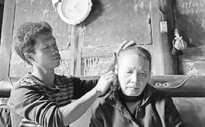今年8月,因为工厂放假,王显强背着母亲回到綦江老家。因为老家的房子常年无人居住,已经倒塌,王显强母子暂时借住在亲戚家。