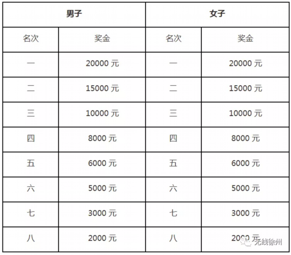 2、中国籍运动员马拉松成绩男、女前八名选手(按净计时成绩),将分别获得奖金。