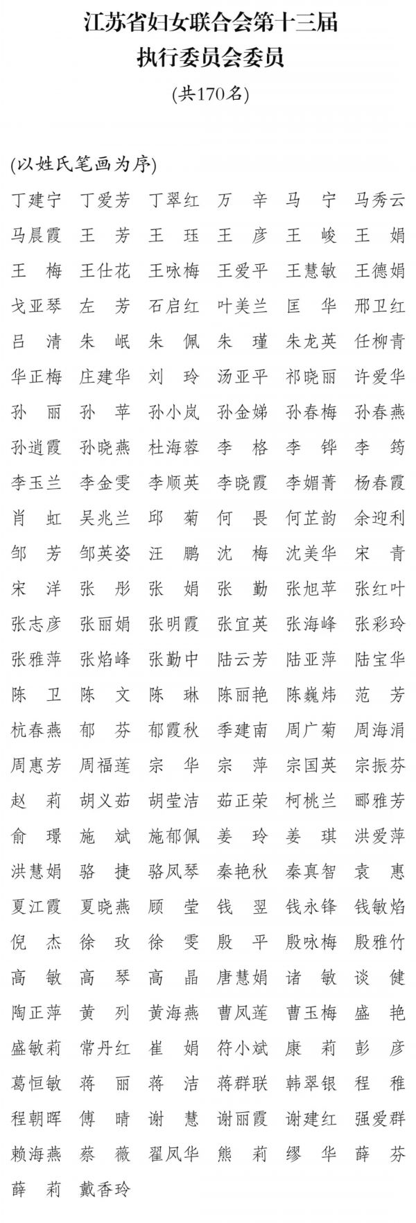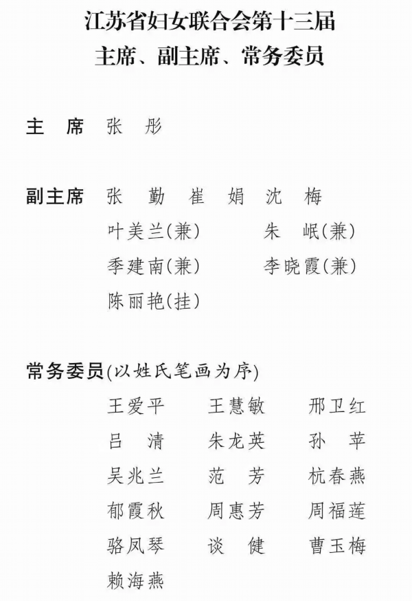 12月7日上午,江苏省妇联第十三届执行委员会第一次全体会议在南京召开,选举产生江苏省妇联第十三届主席、副主席、常务委员。省委常委、组织部部长郭文奇出席会议并讲话。