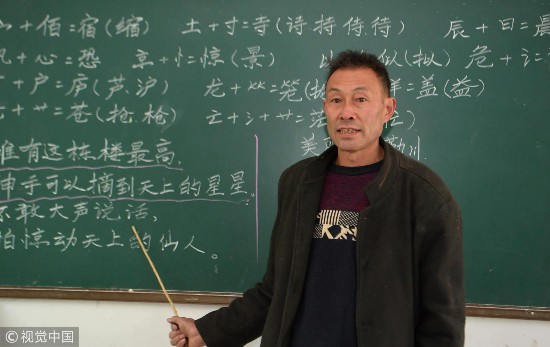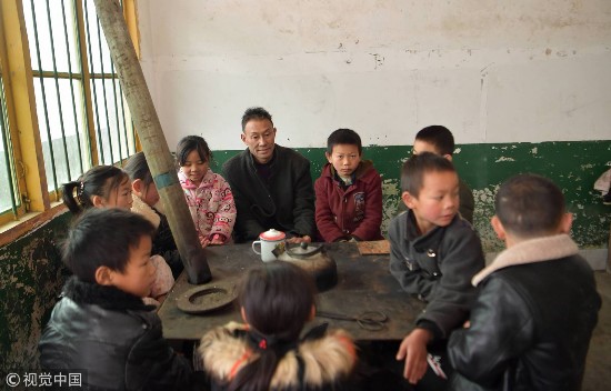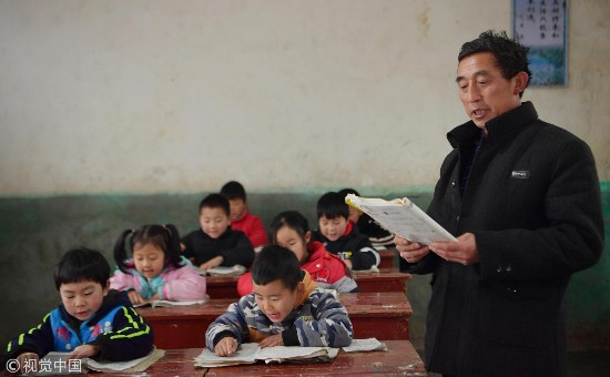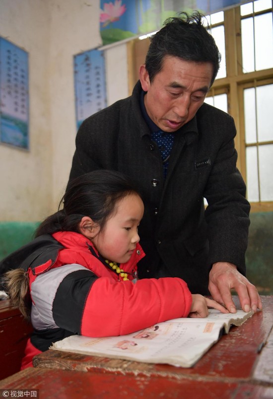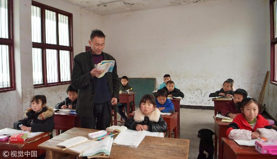 2018年12月4日,湖北恩施。湖北省恩施土家族苗族自治州利川市团堡镇太坪龙村和朝南村相邻且地处偏远,村里的两个教学点成了孩子们求学的神圣殿堂。周文田老师负责太坪龙教学点、周美成老师负责朝南教学点,为附近村庄低年级的孩子提供教学服务。来源:视觉中国 杨顺丕 摄