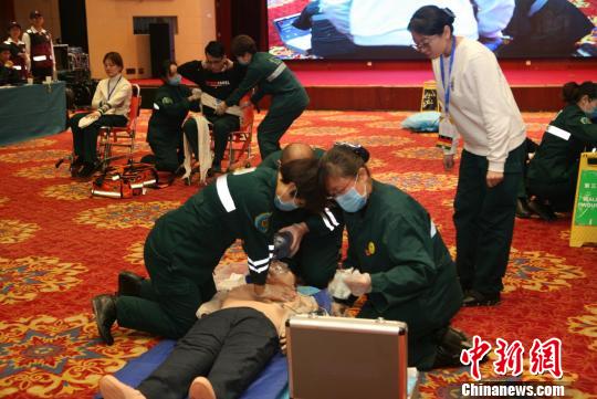 在群体性踩踏事件紧急医学救援演练中,某地体育馆在赛事活动结束后的退场中发生踩踏事件,现场数人受伤,太原市120急救中心本着先救命、后治伤、先救重、后救轻的原则开展救治。现场一名患者突发心跳呼吸骤停,出诊人员立即实施急救,心肺复苏、气道管理、除颤,抢救有序进行。