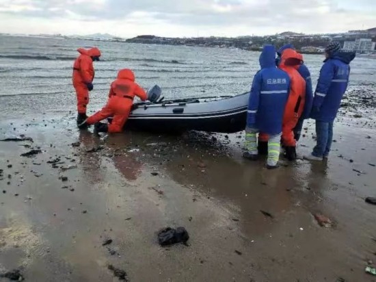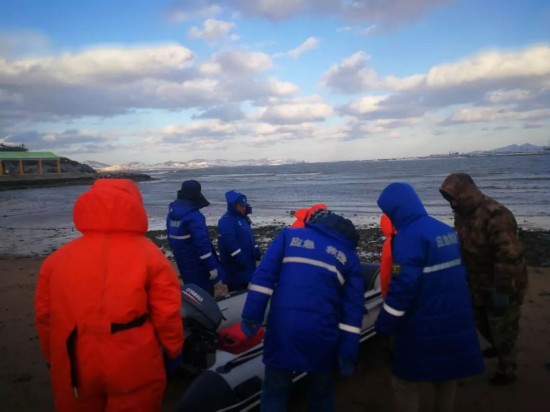 6日下午2点,大连滨城万众应急救援队也在收到求助后赶到现场,他们携带救援船,身着保暖救生衣,准备下海搜救。
