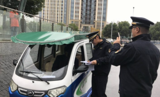 在整治现场,梁溪城管黄巷中队指导员郑沈聚告诉记者,除了联合整治之外,平时城管还会主动向“小飞龙”车主分发传单宣传相关政策。“虽然‘小飞龙’将在全市范围内被取缔,但是对于本市户籍下肢残疾的“小飞龙”车主,政府是有相应补贴的,我们希望通过宣传政府政策的具体内容,减少他们的误解。”