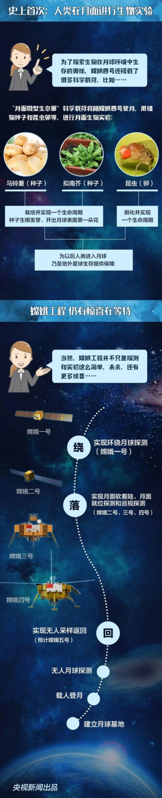 外星人基地、飞船残骸……月球背面到底有什么,网络上总会出现这样或那样的猜想,这一次,中国的嫦娥四号终于要登上这片土地一探究竟了。嫦娥四号从发射到落月开始工作需要经历什么样的过程?“嫦娥”又将在月球背面做些什么?跟随央视新闻的这张长图,一起了解↓↓↓