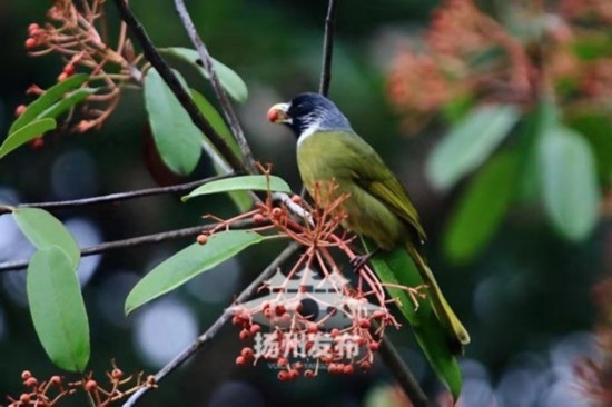 12月9日,扬州绿杨鸟类摄影艺术中心鸟友与扬州大学绿行社同学共40多人,在茱萸湾风景区进行了一场观鸟活动。观察发现,本地留鸟领雀嘴鹎已成为这里的优势鸟种之一;夜鹭是这里的“常客”,一年四季都可见;而特色植物山茱萸的果实,在冬季成为乌鸫、白头鹎、黑脸噪鹛的“口粮”。