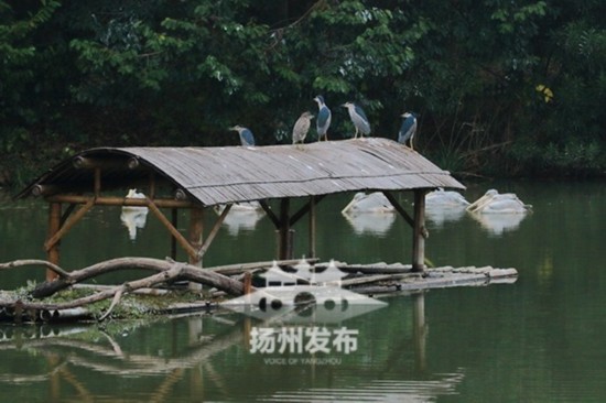 近年来,夜鹭已成为扬州的“留鸟”,即使在现在寒冷的冬季,也不离开扬州。茱萸湾的夜鹭数量不少,在靠近河的地方,就有20多只。
