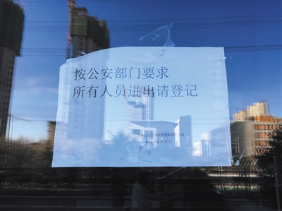 长生生物1号厂房的一侧入口,一边门上贴着“按公安部门要求,所有人员进出请登记”。 新京报记者 李云琦 摄