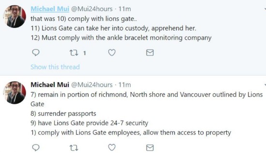 当然,耿直哥清楚在很多国内的网友看来,这个限制条件极多且极为苛刻的保释方案,本身已经是对孟女士的“变相软禁”了。但大家别忘了这个条件是孟女士的律师于昨天的听证会上先主动提出的,因为加拿大的控方原本是想把她继续关在拘留中心的——最多也只是允许孟女士被软禁在她在加拿大的住所,哪儿都不许她去。