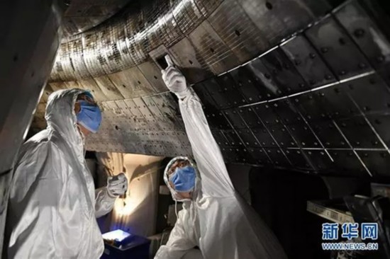 这是2018年度EAST物理实验后,科研人员在进行EAST装置内部检查(8月29日摄)。 新华社 资料图