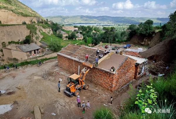 政府奖励村民改造危旧房屋,每户奖励3.2至3.9万元,保障村民的住房安全。2018年7月16日,宁夏西吉县村民用挖掘机运送建筑材料建房,极大地提高了施工效率,保障了施工安全。 摄影 陈团结