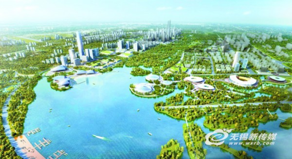 (无锡经济开发区(太湖新城)滨水核心区规划鸟瞰图)