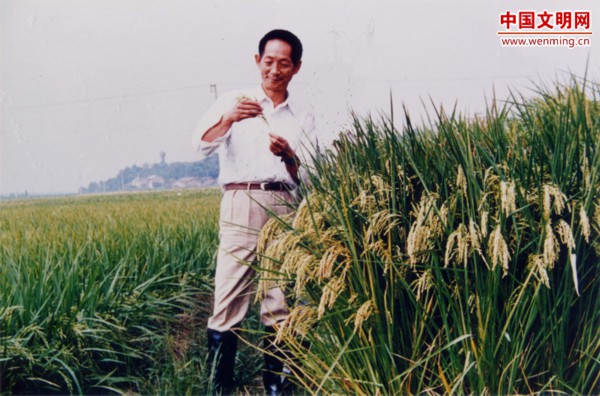 上世纪六十年代初,中国遭受严重自然灾害。路有饿殍的景象深深刺痛了我,我意识到自己既然是学农出身,就应该为农民增产粮食、为人们吃饱饭作贡献。1964年,我开始研究杂交水稻;经过9年的艰苦努力,1973年成功选育了世界上第一个实用高产杂交水稻品种“南优2号”;1976年起,杂交水稻得以在全国大面积推广应用。这项科研成果让中国人有了彻底摆脱饥饿的希望。