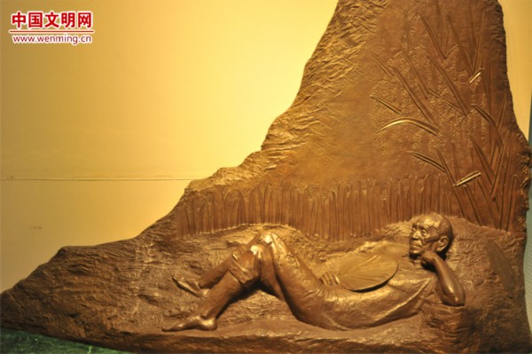 袁隆平“禾下乘凉梦”雕塑。他曾梦见水稻如高粱一般高,穗子和扫把一样长,谷粒犹如花生米那样大,人们可以坐在稻穗之下乘凉。湖南杂交水稻研究中心魏科 摄