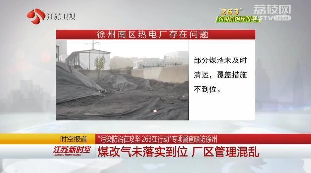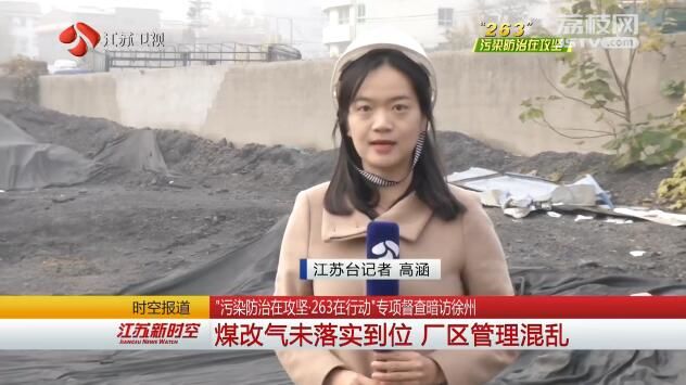 江苏台记者高涵:“在这家工厂里面堆放了不少煤渣,虽然现场做了一些防尘除尘的措施,用简易的塑料布进行遮盖,但遮盖工作并没有完全做到位,您看这边,已经有不少煤渣裸露在外面。”