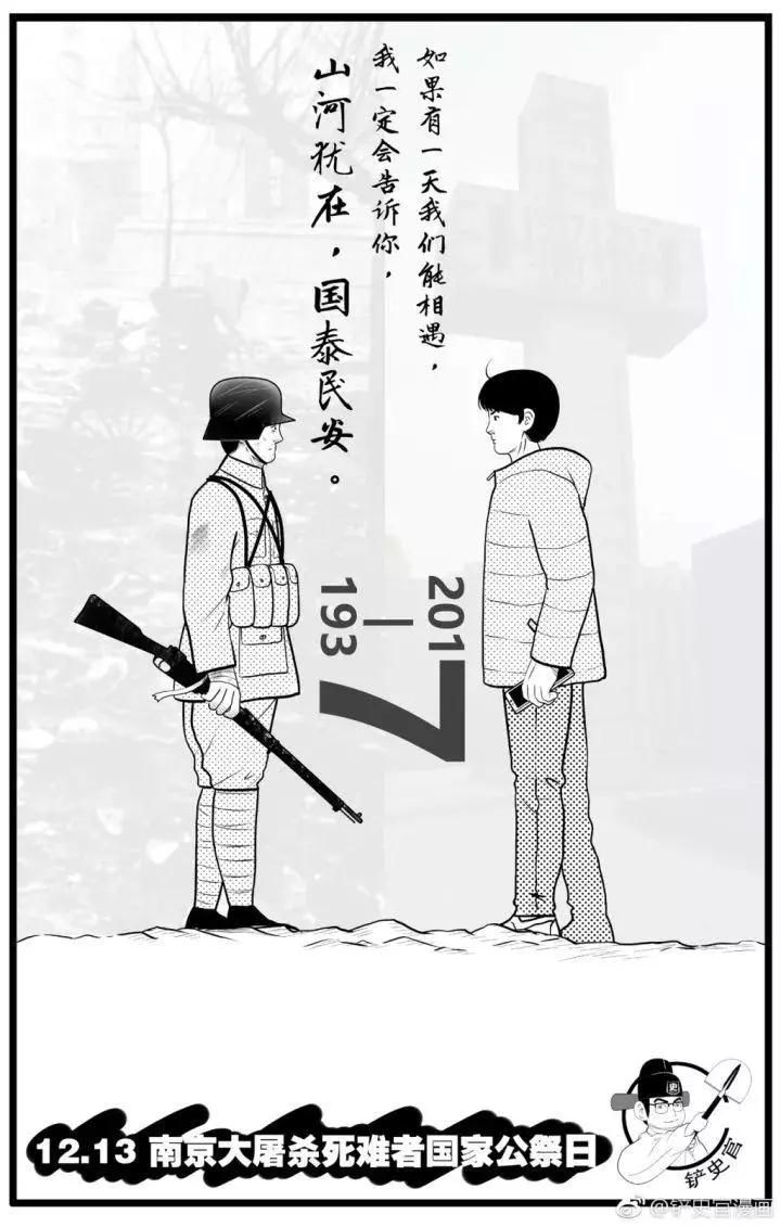 去年的公祭日,两幅“催泪漫画”出现在很多人的微博、朋友圈里,漫画这边1937年的小女孩衣衫褴褛,与另一边2017年的小女孩隔着时空相望,戳中了无数人的心。