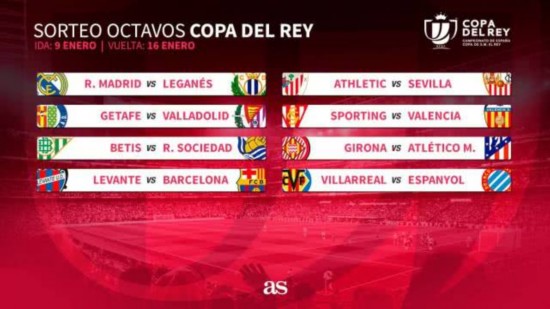 抽签仪式上,西班牙足协公布了1/8决赛的赛程。首回合比赛将于1月5日或6日举行,次回合比赛将于1月15日、16日或17日举行。1/4决赛抽签仪式将于1月18日举行。