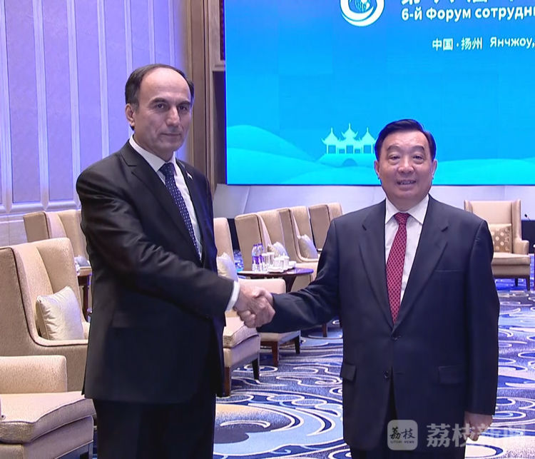 荔枝新闻讯 中共中央政治局委员、全国人大常委会副委员长王晨12日在扬州会见出席第六届中国-中亚合作论坛的塔吉克斯坦副总理伊布罗希姆。