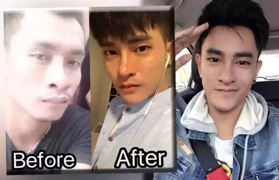 接着,他又进行了几次手术,将自己的脸大整了一番,手术过后,他变身成了一个帅哥。