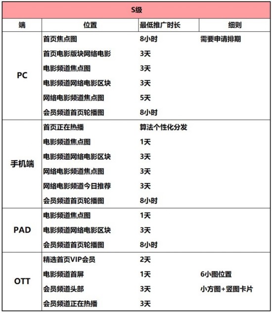 此外,优酷还明确了各级网络电影对应的站内推广资源。播前定级为S级、A级、B级的网络电影将得到相应的基础推广资源。上线后,优酷将依据影片在播放量、口碑、价值观等方面的表现,依托站内推荐算法适时增加曝光;C级网络电影无基础的推广资源,直接进入优酷站内算法曝光。