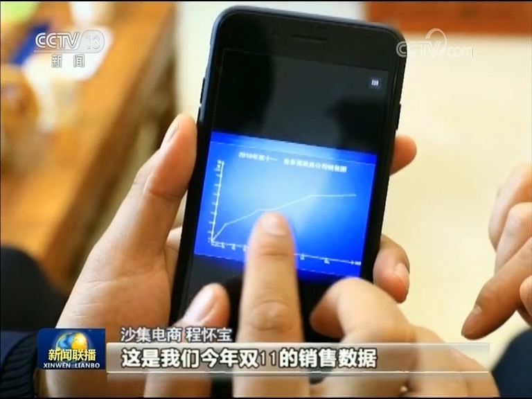 沙集电商 程怀宝:这是我们今年双11的销售数据,3分钟就破了10万,20分钟破100万,然后一小时就到了200万。