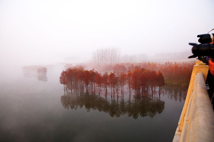 听当地人说,盱眙天泉湖清晨起雾的时候十分迷人,于是,起了个大早,匆匆赶往湖畔,只为不错过晨雾美景。来到湖边,发现周围已经围了一圈扛着“长枪短炮”的摄影师“同好”,原来大家都是来这里拍照取景的,真是“英雄所见略同”!