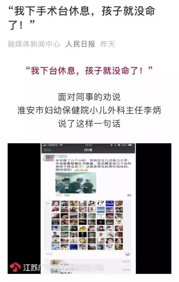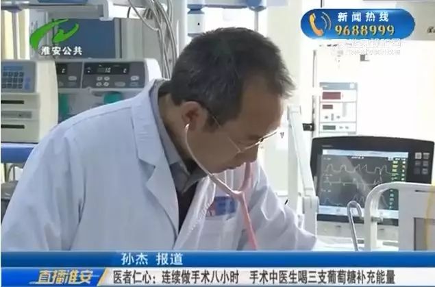 12月7号,《直播淮安》栏目报道了淮安市妇幼保健院小儿外科主任李炳连续做了8个小时手术体力严重透支,术中连喝三支葡萄糖补充能量的新闻。节目播出后,感动了很多淮安的市民,大家纷纷为这位尽责的医生点赞。