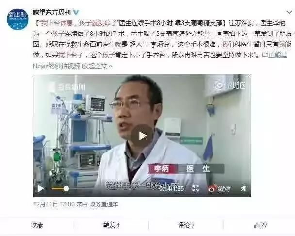 12月11号,新华社官方微博转发该条新闻并为李炳主任点赞。