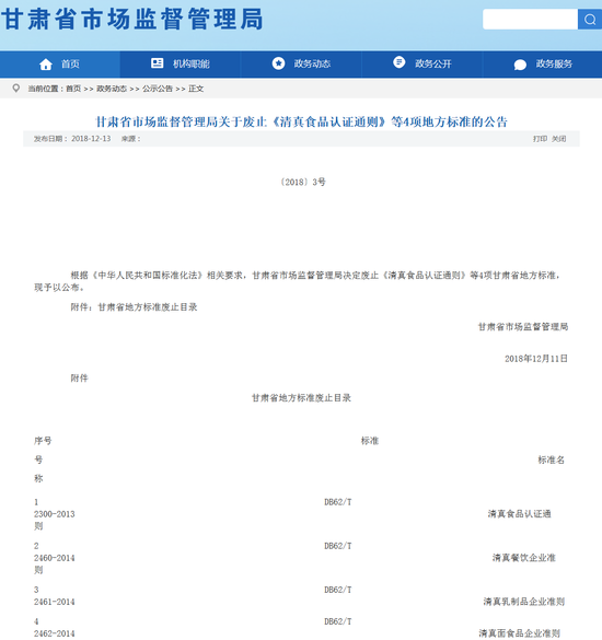 (原标题:甘肃省市场监督管理局关于废止《清真食品认证通则》等4项地方标准的公告)