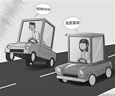 更有甚者,一些文章煞有介事地分析:女司机为什么容易出事故?一是穿高跟鞋不易刹车;二是没有养成“备刹车”的习惯;三是容易分神,注意力不集中。更有人从女性的生理和心理差异来分析女性司机多出事故的理由。