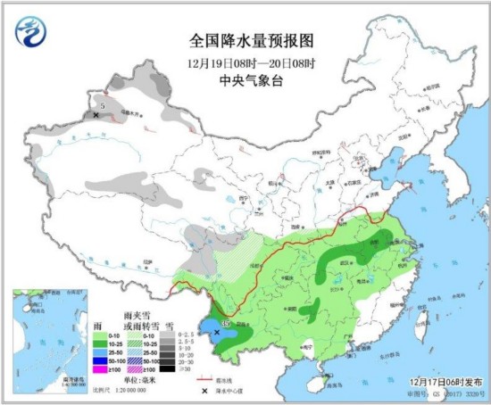 图1 全国降水量预报图(12月17日08时-18日08时)