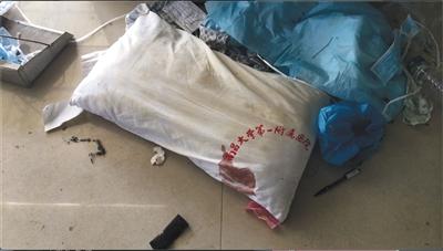 11月29日,顺达洗涤服务中心内,一个带血的枕头被工人扔在地上的垃圾堆里等待洗涤,旁边还堆放了医生手术帽和输液管等医疗废物。