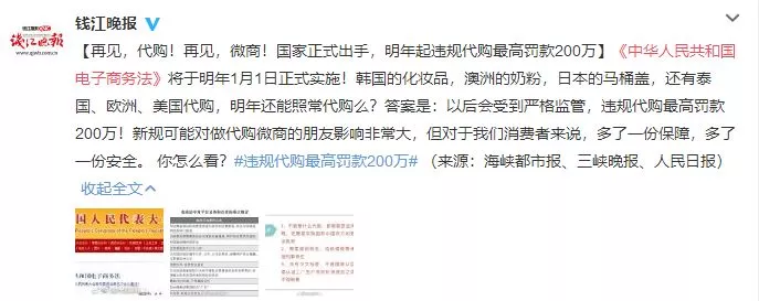 《电商法》实施以后,代购、微信朋友圈卖假货、劣质商品,恐怕不会那么容易了。