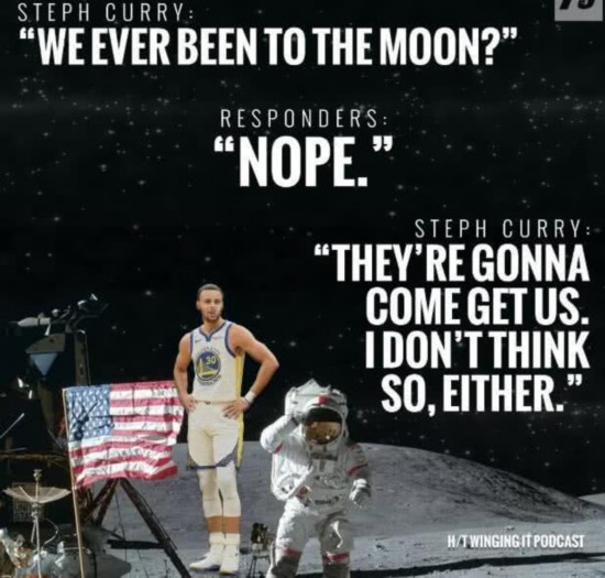 欧文:“库兄,你这思维和我有异曲同工之妙啊! 看来顶级控卫的思维方式就是异于常人哈哈哈!”(欧文啊欧文,登月这事儿吧 以前还真有很多人质疑过,可你这“地平说”...你还是好好打球吧)