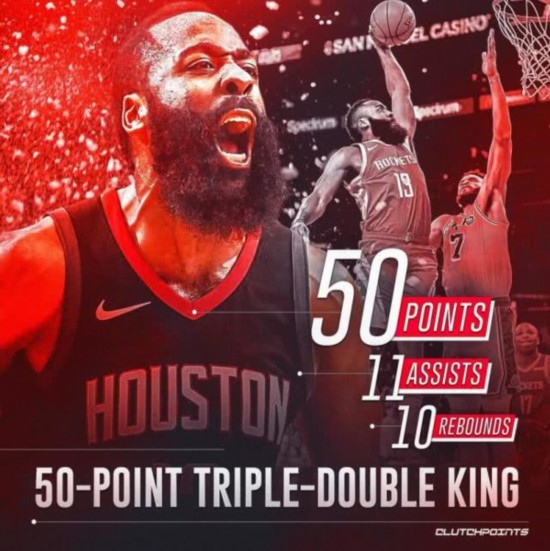 就当人们还沉浸在这温馨一刻 之时,哈登这个不速之客打破了这个换了氛围。50+10+11,这个大胡子送给老詹 一场“屠杀”...