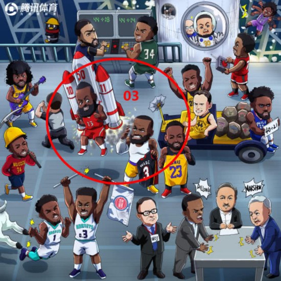 线索: 据目击者爆料,就在詹姆斯和韦德“缠绵”换衣服之后,哈登坐着火箭喷射器从 天而降,用发射器排放的尾气喷了老詹一脸......