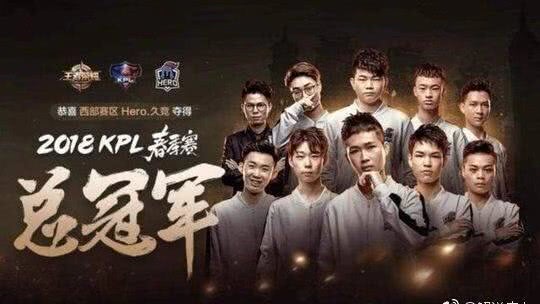Hero久竞在2018年的春季赛中,也有着亮眼的表现,这支队伍是KPL赛场上的新队伍,但是刚进KPL,就完成了自己的三连跳,拿下了2018年春季赛的冠军。2018年KPL的比赛分区开始有了变化,分成了东西部赛区,而分入西部赛区的Hero久竞在自己的第一届职业联赛常规赛中就拿到了西部的头名,在季后赛中拿到西部总冠军与西部总冠军老牌强队EDG.M会师总决赛。