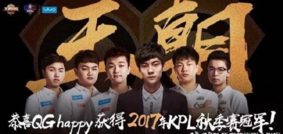 而总决赛的最后一局,QGhappy再次拿出了他们春季赛夺冠的不知火舞和露娜,最自信的英雄和最昂扬的气势,帮助QGhappy拿下秋季赛总决赛的冠军,也让QGhappy一进入KPL便收获了大满贯,让2017年刻上了QGhappy的名字,也因此2017年在KPL中被称为了QG年。
