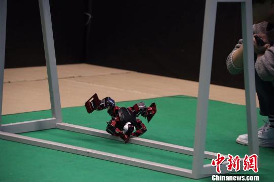机器人“铁人三项”赛中翻跟头过障碍 华子宾 摄
