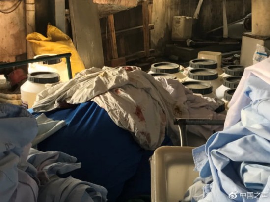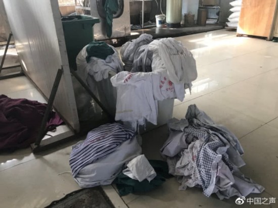 记者观察:带血衣物与普通布草堆放在一起 工厂内卫生条件堪忧