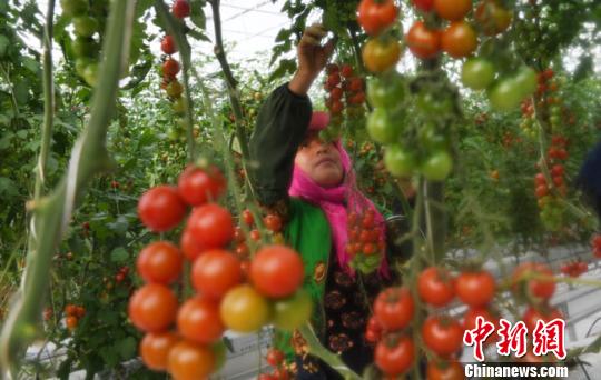 图为12月8日,甘肃酒泉农户在温室大棚内忙碌。 杨艳敏 摄