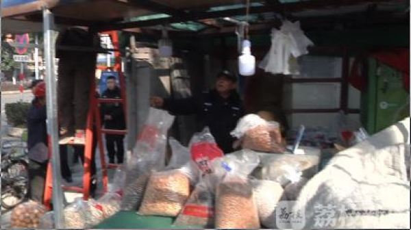 违建的这户居民,在自家房前和屋旁分别搭盖了两间房,靠近路侧的这间被当成门面房,用来经营各种炒货和饮料。城管人员接到举报后,多次上门沟通,对方始终不愿自行拆除违建。