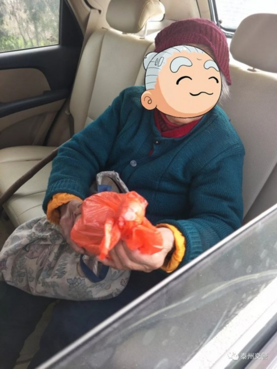 由于实在难以问明老人的家庭信息,民警只能将她扶进警车,根据她的指向一路缓慢将她带到了她熟悉的地方。