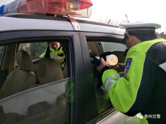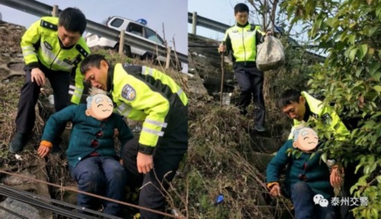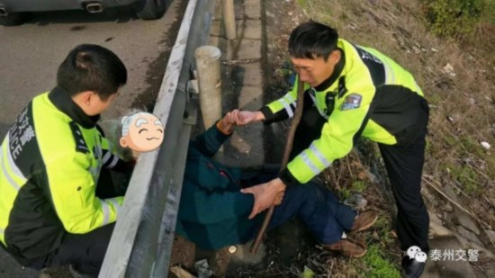 16号上午9点多,泰州交警支队高速三大队接到了报警电话:盐靖高速北行方向有一名老人在应急车道内向北缓慢行走,有较大的安全隐患。交警火速赶往现场,警车开到盐靖高速北行154KM—156KM处时,果真发现有一名白发苍苍的老太,正试图自行从护栏下钻到高速外侧斜坡上,交警一看,护栏下是个大斜坡,上面还有青苔,十分危险。