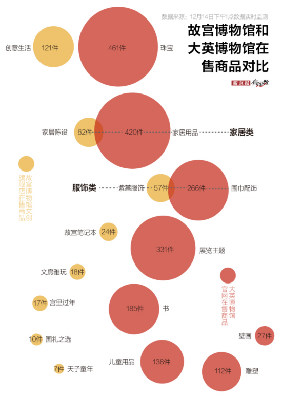 以往,和很多事业单位一样,故宫博物馆依赖于国家财政拨款,2013年的文创市场销售额仅6亿元。相比之下,公开报道显示,政府资金支持只占伦敦大英博物馆总收入的30%,其纪念品销售金额却高达年均2亿美元(约14亿人民币)。纽约大都会博物馆的纪念品销售占其总收入的80%,金额更是高达5亿美元(约34亿人民币)。