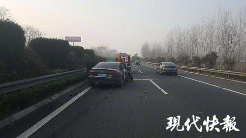 当天下午,徐州交警高速六大队接到报警:一辆黑色奥迪轿车在济徐高速接近沛丰收费站的地方追尾了一辆大货车,现场车损严重,有人员受伤,交警随即驾车赶往事故现场进行查勘。