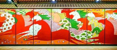 ▲天桥站壁画展现皇帝率众祭天经过天桥的场景,海户屯站壁画提示该地区原为宫廷马匹饲料场,火箭万源站壁画围绕火箭元素展示中国航天大事记。