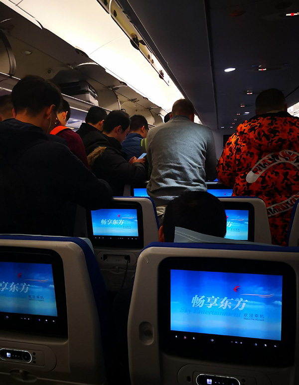 赵小姐表示,在下飞机后,于候机室等了十几分钟,正打算出去退票换别的飞机,这时有通知说换飞机,要12时左右起飞。接近12时,赵小姐告诉记者,已经开始重新登机。12时33分左右,飞机开始滑行。