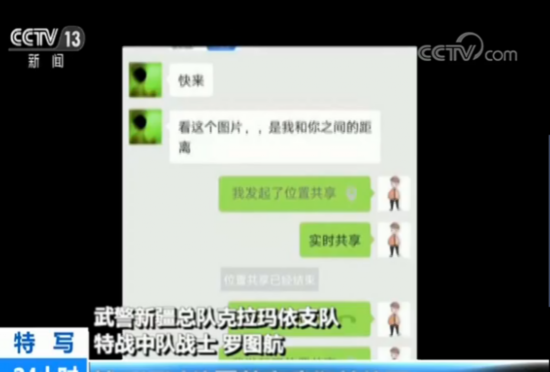 武警新疆总队克拉玛依支队特战中队战士 罗图航: 找不到他的具体位置,就是通过110指挥中心给我们的报警电话,然后我们通过这个报警电话联系到了被困群众,然后加上了对方的微信。当时我们队长卢刚才就是加上微信之后,实施位置共享,通过位置共享,我们前往了被困群众的地方,成功将两名被困群众救起,然后转移至了安置地点。