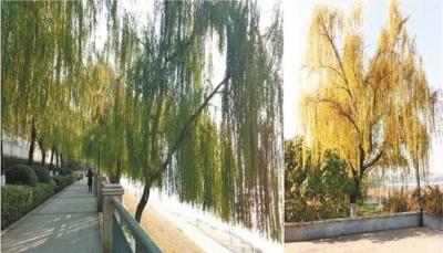 杨子介绍,当天上午,他在硚口汉江江滩公园里看到几十棵垂柳,仍像夏天时一样生机勃勃,其树叶都是绿油油的。但稍后,他发现汉阳月湖公园的几十株垂柳,其树叶都已变成金黄色。不禁疑惑:两个公园的垂柳属同一个品种,仅隔着一条汉江,却为何其树叶没在同一时间变黄呢?