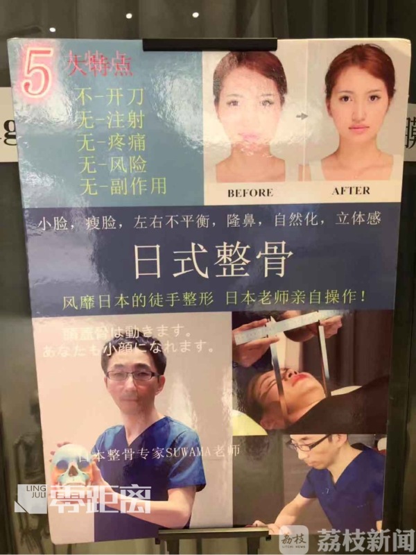 但是,南京市鼓楼区有一家香住SPA却称,有一种日式整骨、筋膜小颜术,单凭日本大师的一双手,就能把脸变小、缩小骨盆!